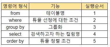 SQL 종류 1. 데이터를 정의하는 쿼리 - DDL(데이터 정의어) : create, drop, alter, truncate 2. 데이터를 조작하는 쿼리 - DML(데이터 조작어) : insert, select, update, delete 3. 데이터를 제어하는 쿼리 - DCL(데이터 제어어) : grant, revoke 4. 트랜잭션 제어하는 쿼리 - TCL(트랜잭션 제어어) : commit, rollback, checkpoint select문에 대해서 기본적인 부분은 아래 글을 참고해주세요! https://bio-logisch.tistory.com/19 [SQL] SQL의 종류(4) - DML(데이터 조작어) - select 1. 데이터(테이블, 시퀀스, 뷰)를 정의하는 쿼리 - DDL(데이터 정의어..